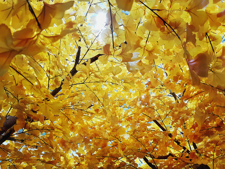Yellow ginkgo leaves on the tree in autumn, fall season