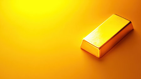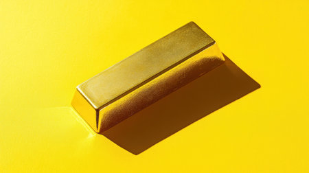 A gleaming gold bar rests against a bright yellow background, symbolizing wealth and prosperity. This image captures elegance and luxury, perfect for financial themes.