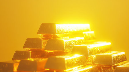 A stunning image of stacked gold bars radiating a warm yellow glow, symbolizing wealth, luxury, and financial success in a visually captivating manner.