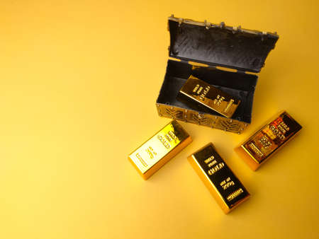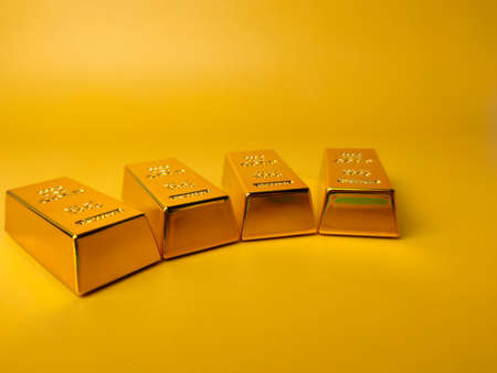 Gold bars and Financial concept and conceptual image on a yellow background.