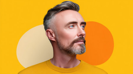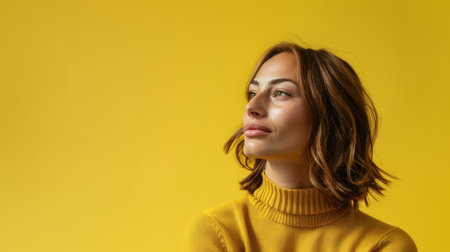 Young man in a yellow shirt stands against a yellow background with soft studio lighting, a calm expression, clean composition, and casual fashion for lifestyle use