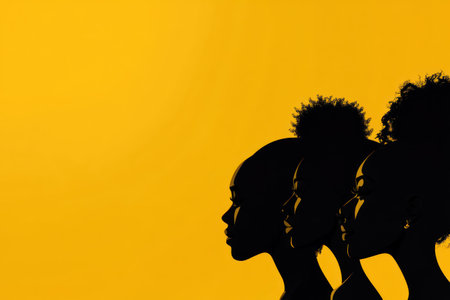 Close-up young African mans face, head with colored silhouette, shadow isolated on light background. Facial expression, human emotion concept.
