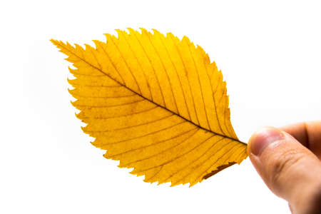 Yellow maple leaf isolated on a white background. Autumn leaves fallen.
