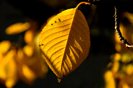 The quiet beauty of the golden leaves, the veins of the golden leaves in the autumn sun