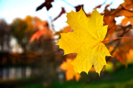 Bright Colorful Maple Leaves in Autumn on a sunny day