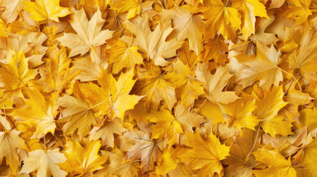 A bright and cheerful arrangement of yellow autumn leaves on a yellow background, creating a vibrant and monochromatic fall design.