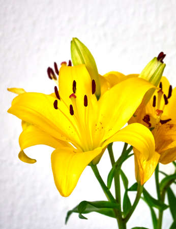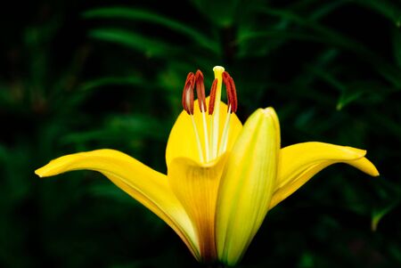 Spring flower background. Lily flower of yellow color blooming in the spring garden