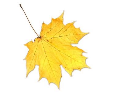 Autumn maple leaf, isolated on white. Background. Copy space.