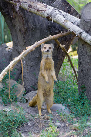 Yellow mongoose Cynictis penicillata is standing on hind legs