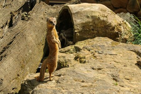 Mongoose Cynictis penicillata in zoo safari park in their habitat - summer daytime