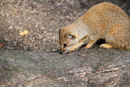 The Yellow mongoose lurking on the stone