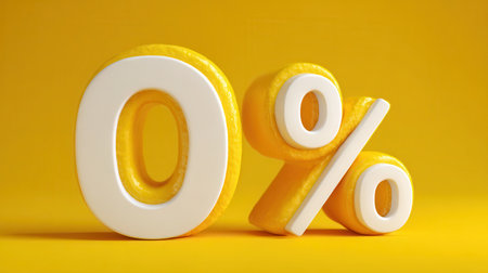 White zero percent or 0% special offer on yellow background.