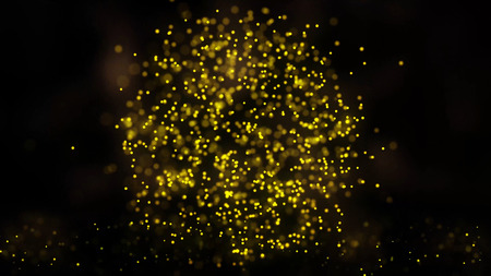Abstract gold dust on a black background. Dust particles fly in different directions.