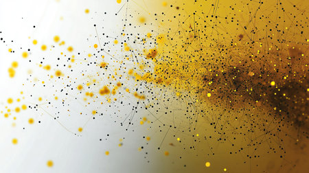 Computer generated abstract beautiful background. Gold particles, dots and lines, 3d rendering.