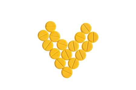 Yellow Multivitamin and mutimineral pills, nutritional Supplement on white background in close-up