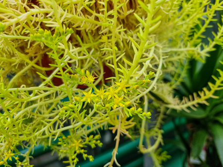 Goldmoss stonecrop, close up. Also known as the sedum acre, mossy stonecrop, goldmoss sedum, biting stonecrop