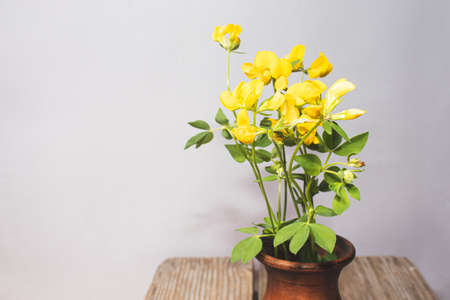 yellow broom flower on broom bush. Close up of a plant. Flower from the garden. Nature shot