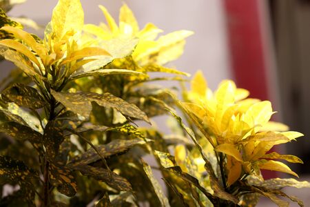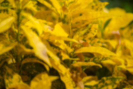 Codiaeum Variegatium Tree or Croton, Variegated Laurel indoor,outdoor decorative plant, selective focus with blur background