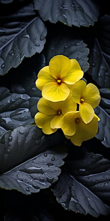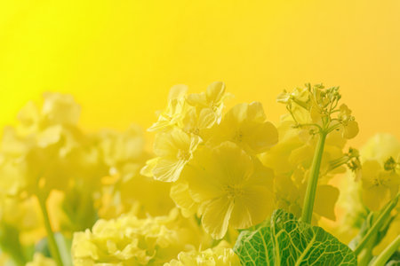 Yellow flowers cropped with muted tones and green leaves and fine detail
