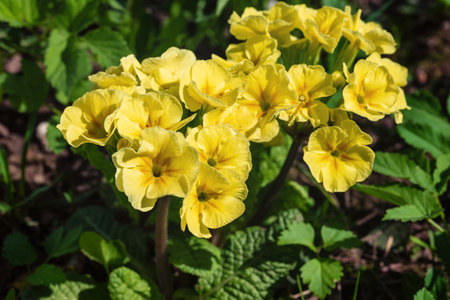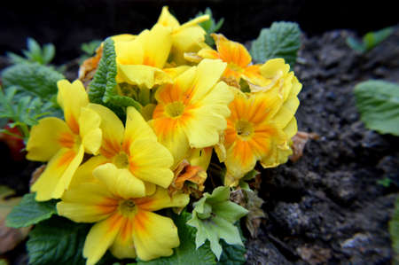Yellow Primula flowers in the garden.