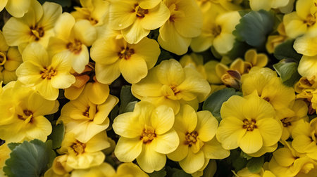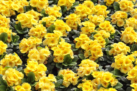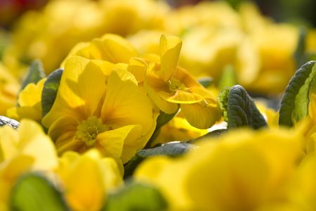 Yellow flowers of Primula, floral background