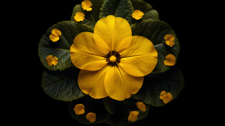 Beautiful yellow primrose with water drops close-up on a black background