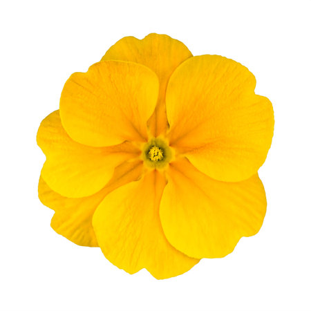 Single Yellow Primrose Flower Isolated on White Background. Macro on Primula Flower
