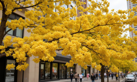 Natures Vibrant Canvas: The Majestic Tree adorned with Yellow Flowers, A Close-Up View