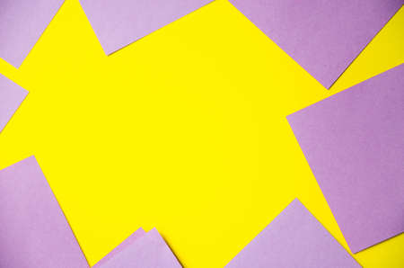 abstract geometric background yellow and purple sheets of paper in a chaotic order.