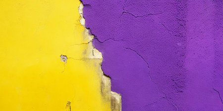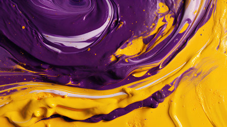Creative abstract background of acrylic paints in purple and yellow tones.