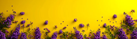 Purple Lavender Flowers on Bright Yellow Background Creating a Vibrant Contrast with Nature and Spring Floral Theme AI Generative