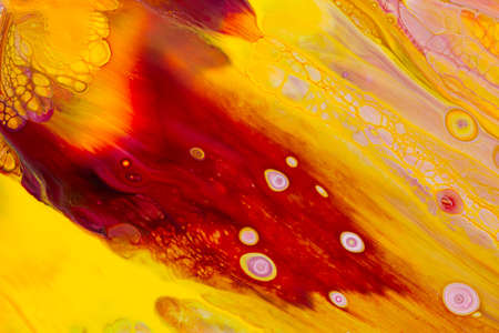 Abstract background of acrylic paint in red and yellow tones
