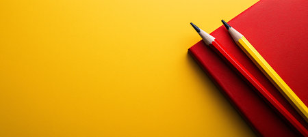 Two pencils, one red and one yellow, are placed on top of a yellow background. The background is a bright, sunny yellow colour, which creates a cheerful and inviting atmosphere