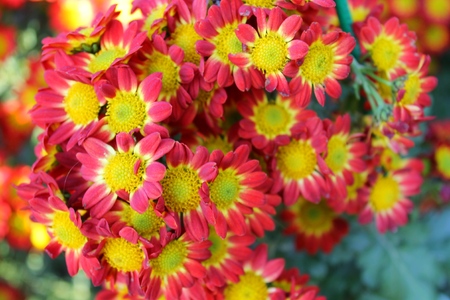 Yellow and pink flower. Chrysanthemum chamomile flowers background yellow and pink pattern. Yellow and pink bouquet of flowers bright floral chrysanthemum background, as a background