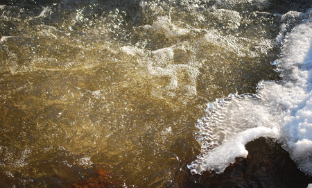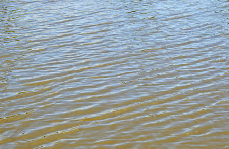 Detailed close up view of water surfaces with waves and ripples and the sunset sunlight reflecting at the surface. spring landscape