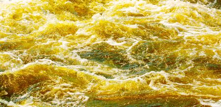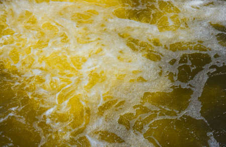 Yellow water surface background. Water texture with reflections, splashes and bubbles. Summer nature background