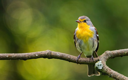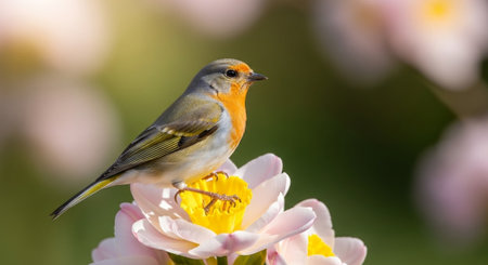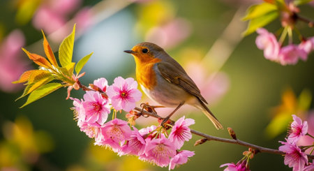 Vibrant Robin Perched on Blossoming Branch in Springtime Light