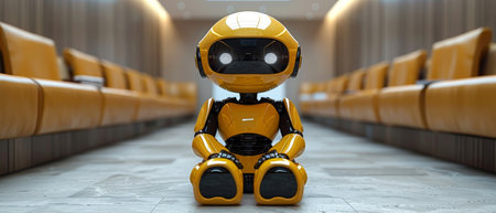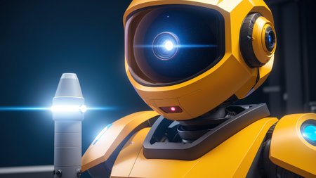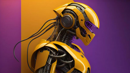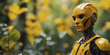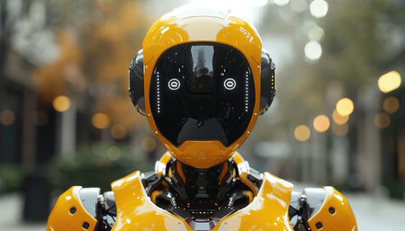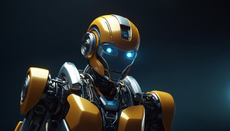 This image features a futuristic humanoid robot with sleek design and yellow accents. The robot represents advanced technology and innovation in artificial intelligence.