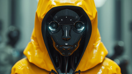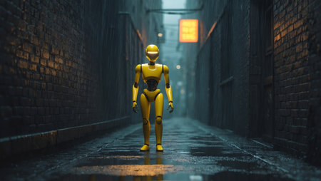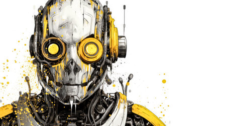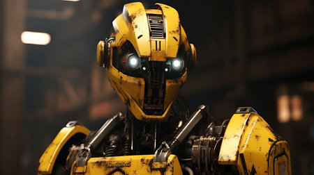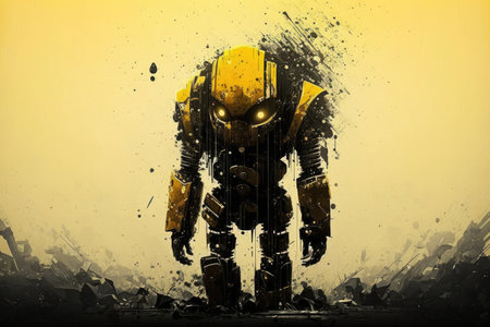 abstract futuristic sad robot in yellow black tones, created with generative ai