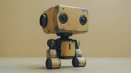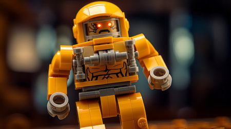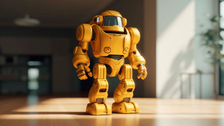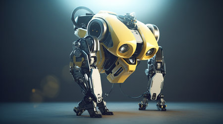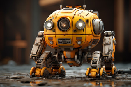 A robot that is standing on a yellow surface. AI generative image.