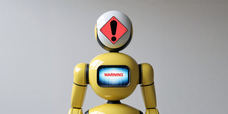 humanoid robot with bright yellow hands sad robot, created with generative ai