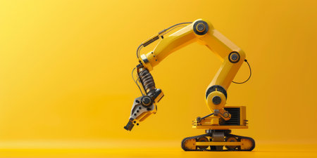 The image shows a yellow robotic arm on a yellow background.