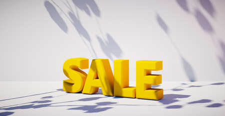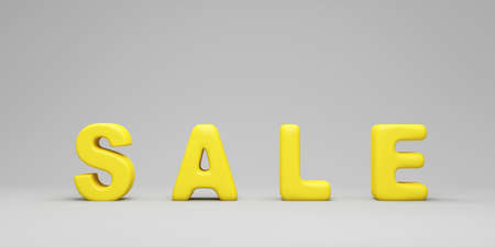Yellow Sale Text on White Background. 3D Render Illustration.