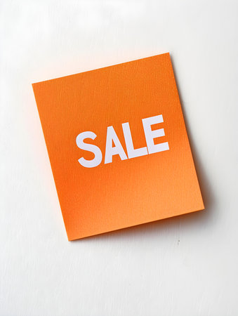 White 'SALE' Text on an Orange Square Paper Note. White Background