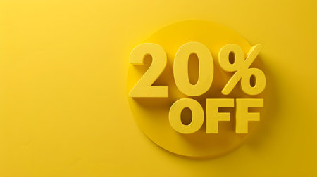 Yellow '20% OFF' Promotional Sign on a Yellow Background with Copy Space