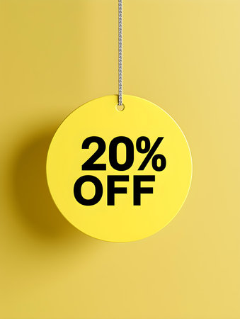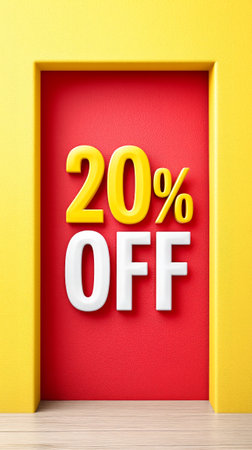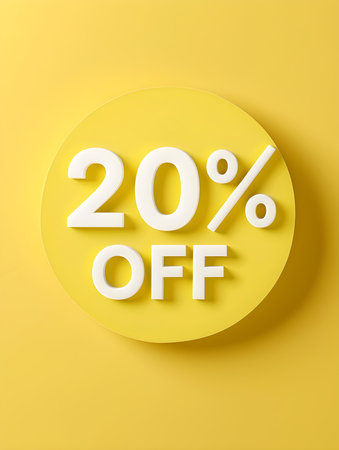 Light Yellow '20% OFF' Promotional Sign on a Light Yellow Background