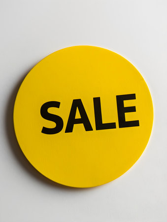Black 'SALE' Text on a Yellow Round Paper Note. White Background