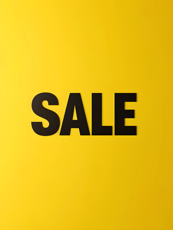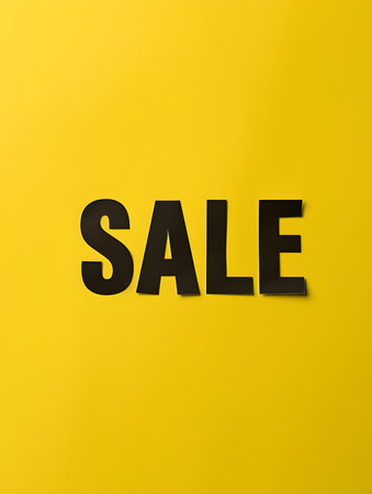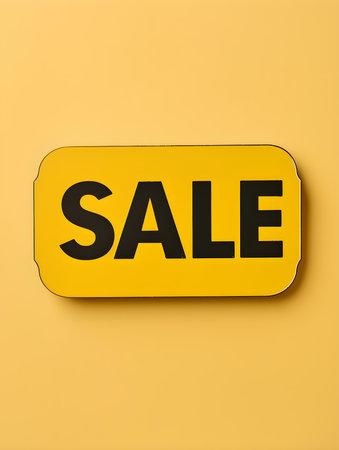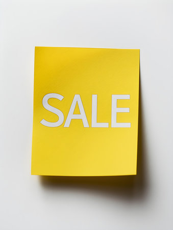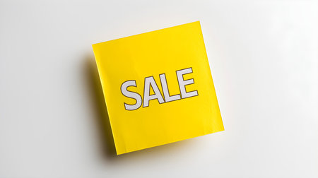 Black 'SALE' Text on a Light Yellow Square Paper Note. White background with copy space
