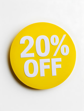 White '20% OFF' Promotional Sign on a Light Yellow Background
