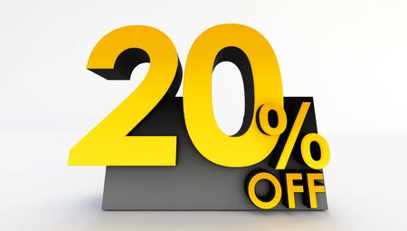 3D rendering of twenty percent off on a white background. Sale of special offers. Discount with the price is 20%. black friday